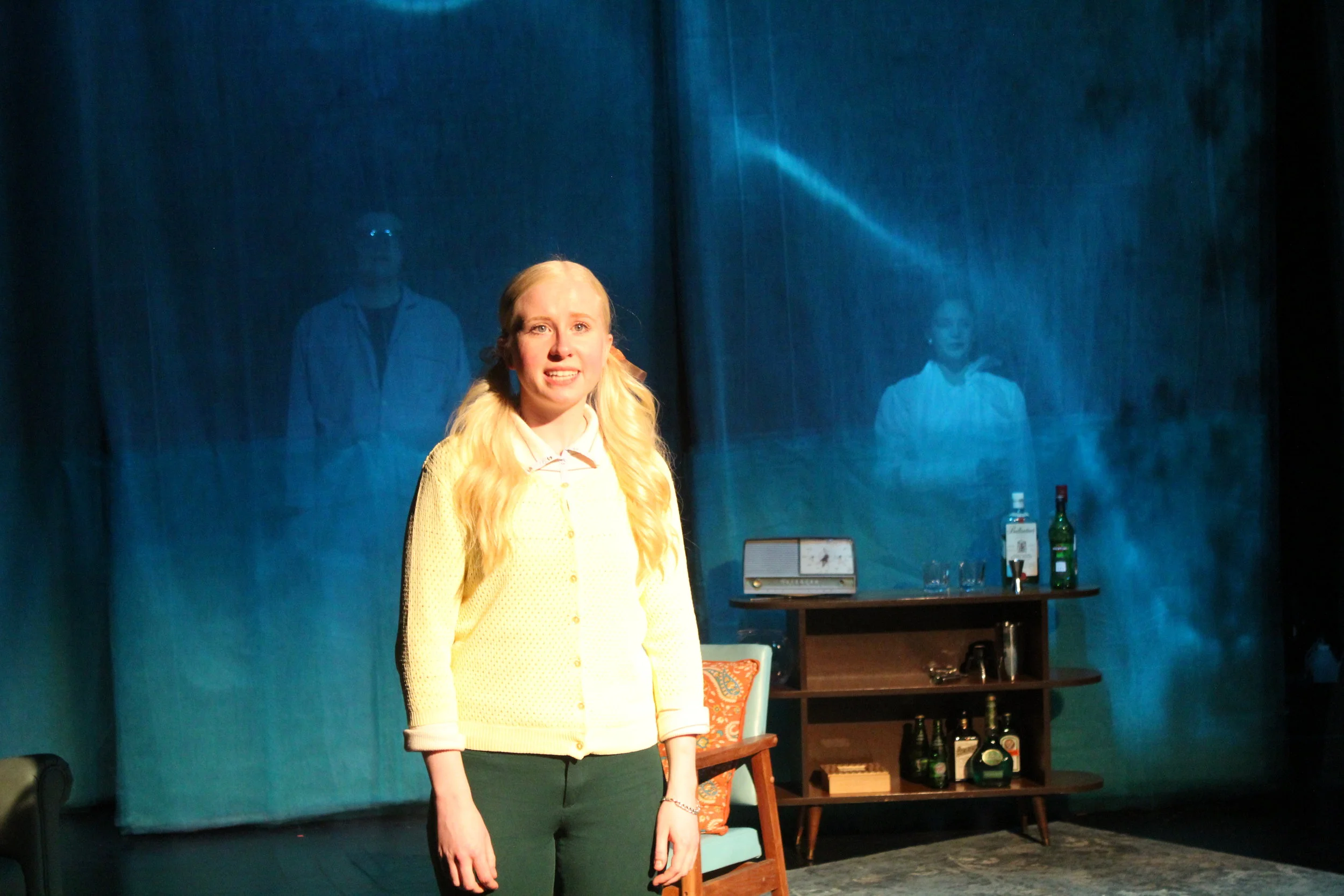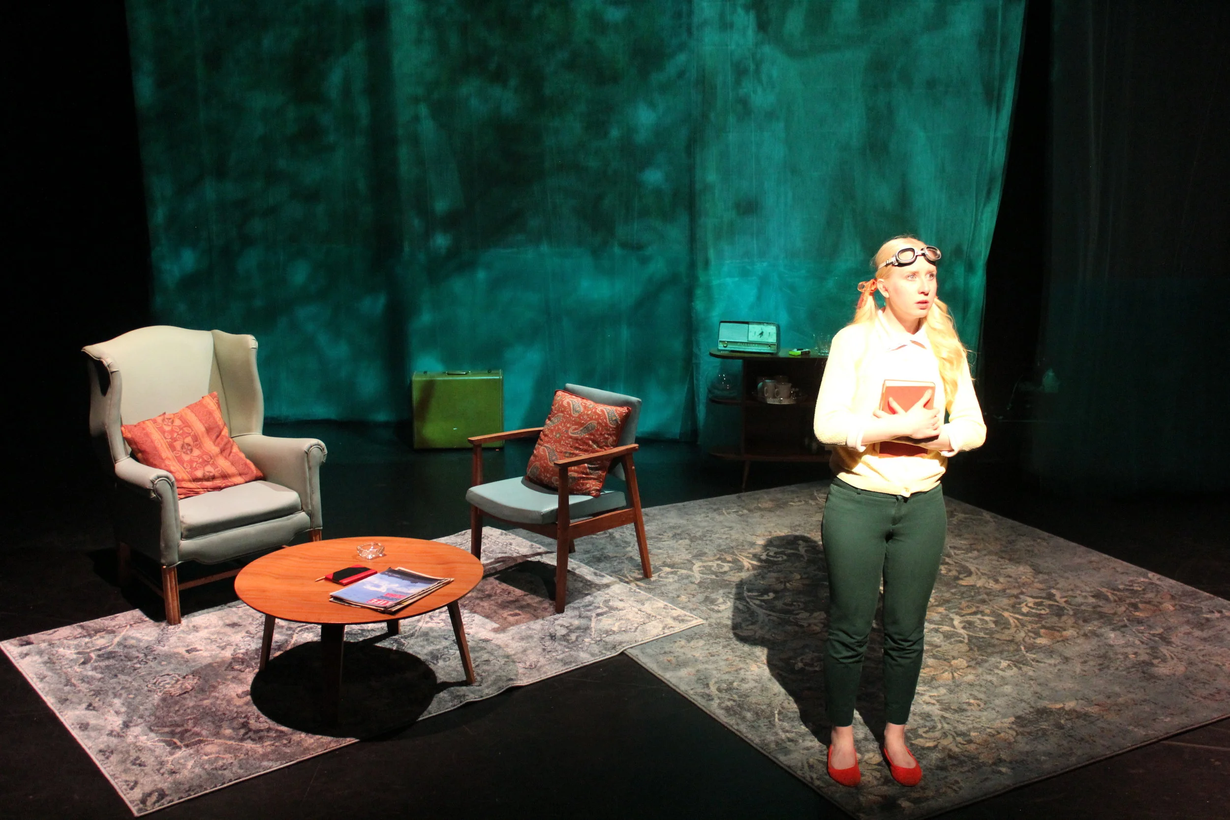“the play opens with Iris lamenting the death of her goldfish. A wanderer from a nearby beach soon enters Iris’s home and life. Mr. Lawrence... is perhaps her goldfish reincarnate...What follows is a poignant tale of family, loss of innocence, independence, and obligation...Cool grey, green, and blue tones, combined with pebbled lighting by Joel Grinke, the lighting and projection designer, is true to the West Coast. On stage, furniture captures that 1960s vibe, while lighting and projections submerge the set underwater. ‘There are a lot of strange occurrences in the play that are kind of magical, so the design is a real mix of surrealism and reality,’ says Barbara Tomasic, director”. - Arts Umbrella, June 2017